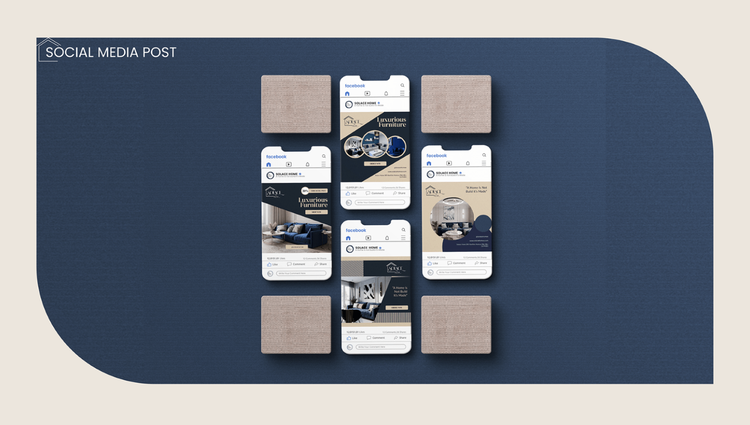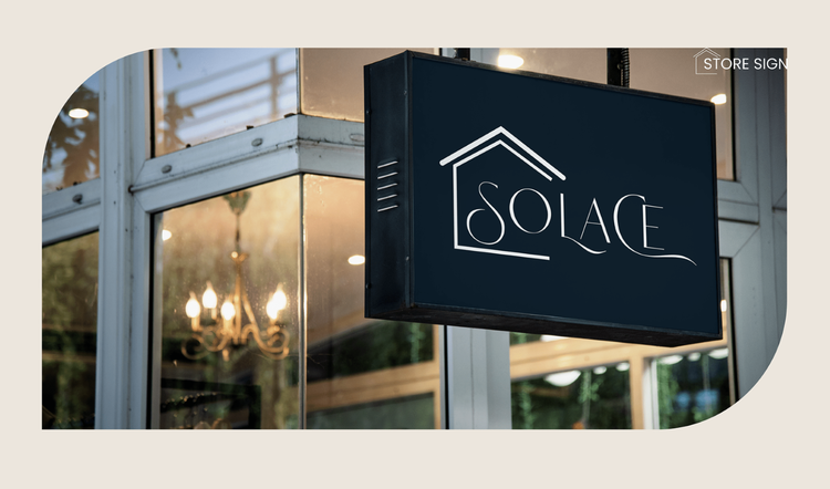 Examples of signage, business cards, direct mail, pamphlets, and social media posts: Solace Home