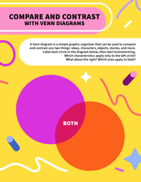 Adobe Express templates are great for Venn diagrams — even better than common online Venn diagram generators — because it takes all the hard or tedious parts of material creation out of the equation, and offers a variety of exciting tools for making your Venn diagram visually appealing. For teachers, this enables you to focus on preparing for class, while students love how easy it is to get started creating right away.