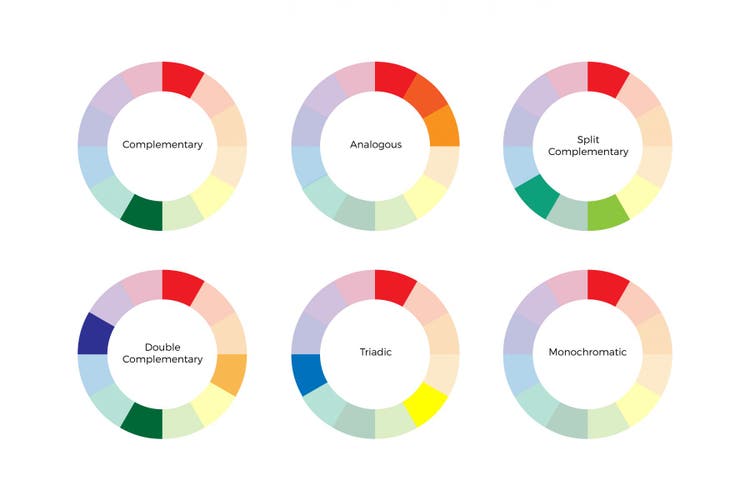Double complementary are the same as complementary colors, except it’s two pairs now. Remember it’s important to have enough contrast between the 4 colors.