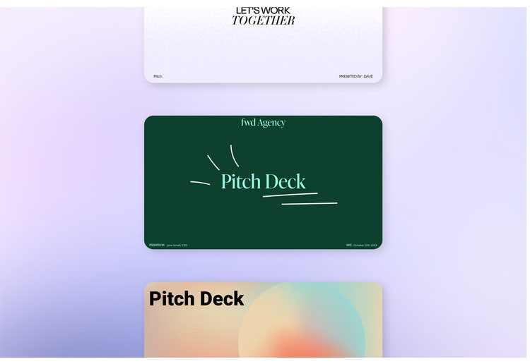 Take inspiration from the pros on Behance with these excellent examples of what a clear and well-designed pitch deck can look like.