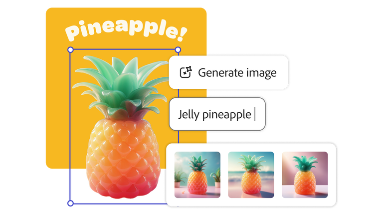 Resize assets for different channels in a click and translate text in seconds. Quickly insert or remove objects and make backgrounds disappear.¹