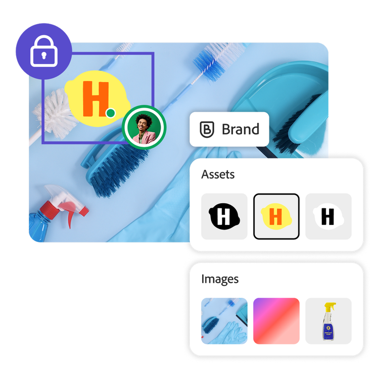 Hyväksyttyjen mallien, lukittujen elementtien ja brändäyspakettien avulla kaikki työryhmät pääsevät käyttämään oikeita resursseja, kirjasimia ja värejä skaalatakseen sisältöä yhdenmukaisesti.