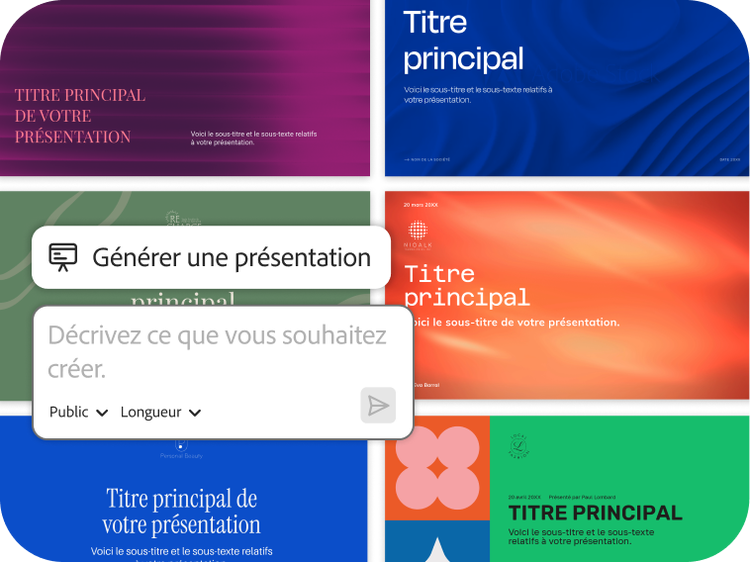 Donnez une nouvelle dimension à vos fichiers grâce à l’IA et créez du contenu original à partir de plus de 500 000 modèles optimisés par Adobe Express, le tout inclus dans Acrobat Studio.