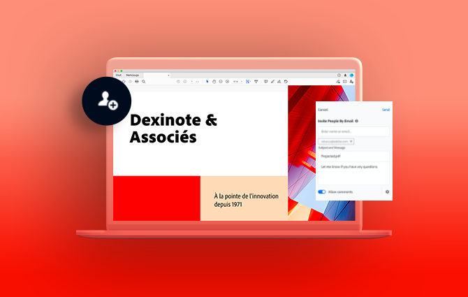 Envoyez des documents à vos collègues et recueillez rapidement leurs commentaires (annotations, notes repositionnables, textes barrés ou surlignés, etc.).