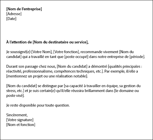 Une lettre de recommandation est souvent demandée lors de candidatures à des stages ou emplois. Dans ce contexte, elle met en valeur les réalisations professionnelles du candidat, ses contributions à un travail d’équipe et ses capacités à s’adapter à un environnement de travail.
