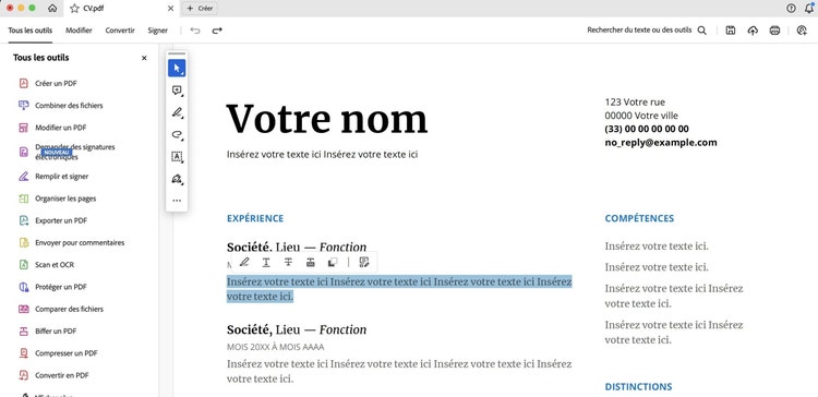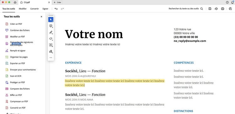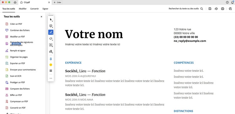 Si vous travaillez fréquemment avec des documents PDF, vous pourriez préférer travailler hors connexion, tout en bénéficiant des fonctionnalités complètes d’un logiciel PDF dédié, tel qu’Adobe Acrobat. Le format PDF est efficace pour éviter toute modification involontaire de votre fichier, mais aussi pour l’édition et les annotations.