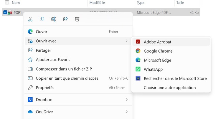 Un fichier PDF doit normalement s’ouvrir avec un navigateur web ou avec Adobe Acrobat Reader, lorsque vous double-cliquez dessus. Si cela ne fonctionne pas, cela ne signifie pas pour autant que vous devez réparer votre fichier PDF. Cliquez avec le bouton droit de la souris sur Enregistrer, avant d’ouvrir le document, faites un clic droit et sélectionnez Ouvrir avec Adobe Reader. Si cela ne fonctionne toujours pas, c’est le signe que vous devez peut-être mettre à jour votre version d’Adobe Acrobat Reader.