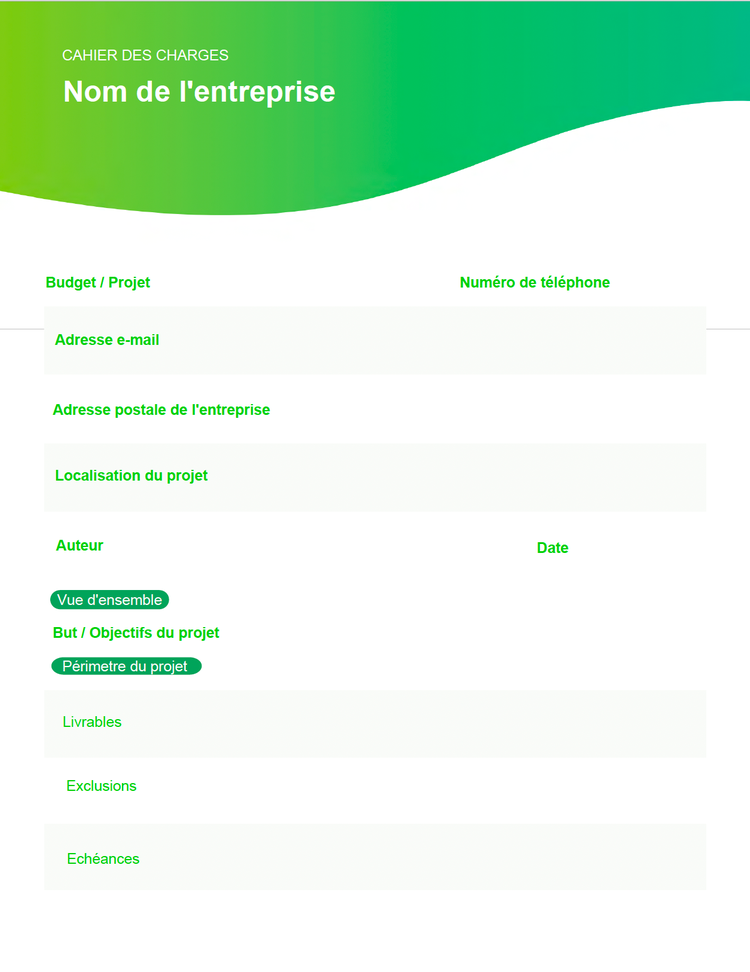 Tout ce qui, selon vous, apportera une valeur ajoutée à la gestion du projet doit être inclus dans ce document. Par exemple, des outils spécifiques à utiliser, des mises à jour à effectuer ou des réunions à planifier et payer.