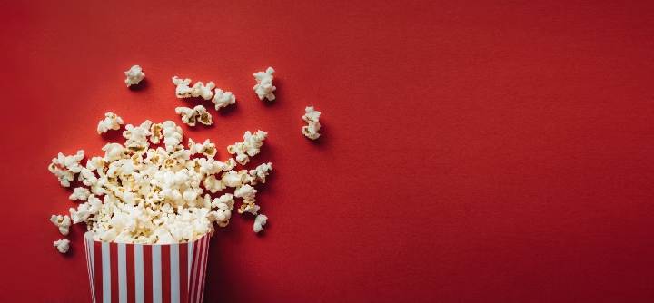 Pot de pop-corn sur fond en teintes de rouge : la gourmandise