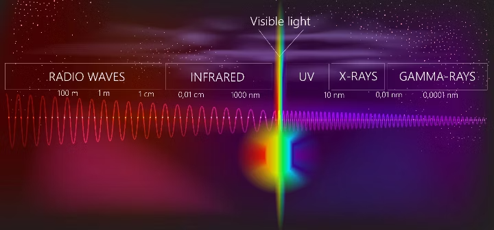 Vous vous demandez peut-être pourquoi le nom d’une lumière imperceptible par l’œil humain vient de la couleur rouge. Étymologiquement, le terme vient du latin infra qui signifie « plus bas » : la lumière infrarouge est ce qui se situe en dessous du rouge. C’est parce que les lumières qui parviennent à l’œil humain sont dépendantes de la longueur d’ondes qu’elles émettent. Il se trouve que le rayonnement de la fréquence la plus basse est de couleur rouge (on la perçoit entre 625 et 740 nanomètres environ). La lumière infrarouge se situe juste en-dessous de ce spectre : elle n’est pas perceptible par l’œil humain, mais on peut la détecter sous forme de chaleur.