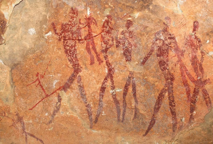 Peinture murale de chasseurs-cueilleurs Bochiman en Afrique du Sud