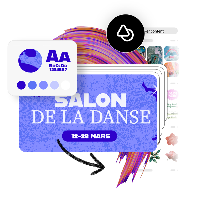 Découvrez des modèles conçus par des professionnels pour vous mettre en route ou créez votre bannière d'événement de toutes pièces. Créez un thème pour vos créations à l'aide de photos, d'icônes, de logos, de polices personnalisées et d'autres éléments personnalisables pour leur donner un aspect authentique. Avec Adobe Express, il est facile et gratuit de créer, d'enregistrer et de partager vos créations en quelques minutes, afin d'ajouter des collaborateurs, d'obtenir leur approbation et de faire de votre événement un succès.