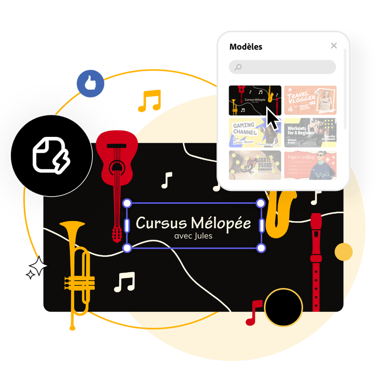 Donnez une nouvelle dimension à votre chaîne YouTube en jouant avec les innombrables possibilités qu'Adobe Express met à votre portée. Que ce soit pour une petite touche finale ou une refonte totale de l'arrière-plan, nos outils répondent à chaque besoin. Harmonisez les teintes avec l'identité visuelle de votre marque, jouez avec les palettes de couleurs, et sculptez le texte, les alignements et les thèmes pour une bannière qui vous ressemble parfaitement. Donnez vie à une couverture YouTube qui captera à coup sûr l'attention de vos abonnés.