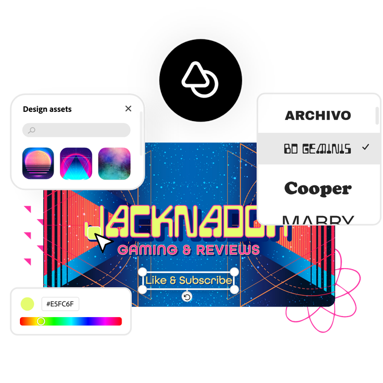 Faites d'Adobe Express votre expert en création de bannières YouTube gaming.