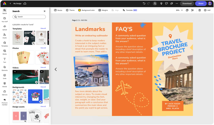 Faites la promotion d’un voyage de rêve grâce à une brochure réalisée dans Adobe Express, l’application de création polyvalente, rapide et facile. Démarrez rapidement et facilement avec des modèles personnalisables et un contrôle facile du formatage et de la mise en page. Aucune expérience requise.