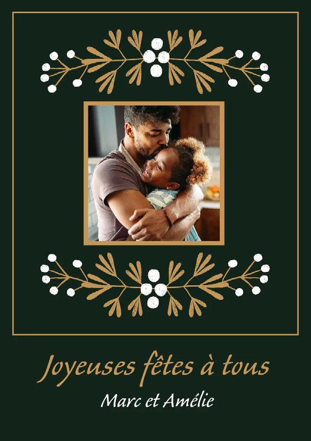 Créez une carte de Noël qui réjouira vos amis et votre famille. Choisissez une photo pour votre carte de vœux, puis explorez nos modèles pour personnaliser votre carte autant que vous le souhaitez. Ajoutez du texte, des icônes, des bordures, des filtres et bien plus encore pour rendre votre photo encore plus festive. Imprimez vos cartes de Noël à la maison ou au travail, ou envoyez-les à un imprimeur professionnel pour une présentation plus formelle. Vous pouvez également télécharger votre carte de Noël sur toutes vos plateformes numériques. Il vous suffit de choisir un modèle, de le personnaliser et de le partager.