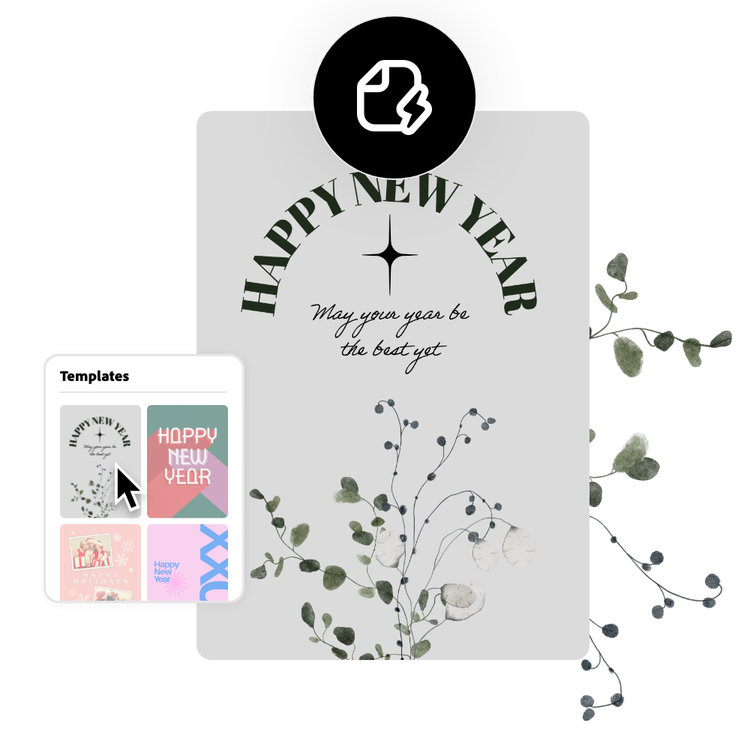 Commencez avec des modèles de cartes de Jour de l’An personnalisables proposés par Adobe Express.