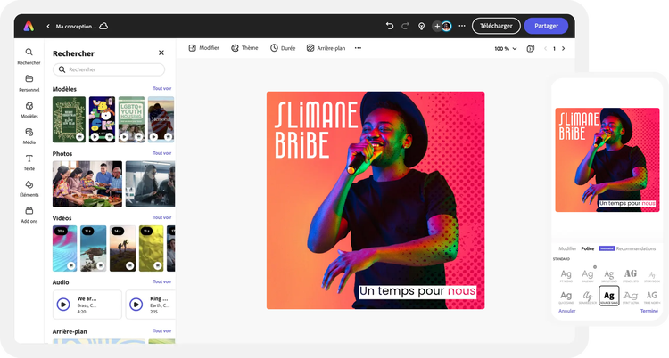 Adobe Express simplifie la création de pochette d’album personnalisée. Aucune compétence spécifique n’est requise.