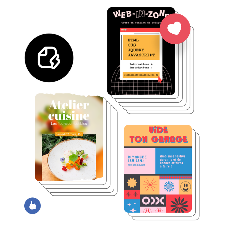 Adobe Express est un service gratuit basé sur le cloud. Réduisez les coûts liés à l'organisation de votre événement en utilisant la plateforme plutôt qu'en faisant appel à des professionnels. Où que vous soyez et quoi que vous fassiez, vous pouvez vous connecter à votre compte et peaufiner la conception de vos flyers. Utilisez Adobe Express pour créer des dépliants accrocheurs qui retiendront l'attention de votre public cible. La plateforme est gratuite, facile à utiliser et très amusante.