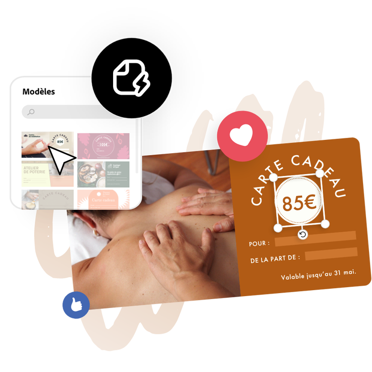 Commencez par choisir parmi des milliers de modèles de bon cadeau. Ou bien, commencez par créer un bon cadeau à partir d'une page blanche.Personnalisez votre bon cadeau.