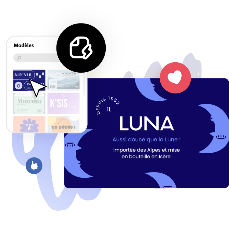 Décorez vos bouteilles d’eau avec des étiquettes créées par des professionnels, ou avec vos propres designs.