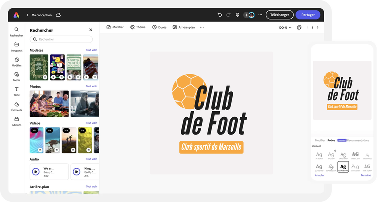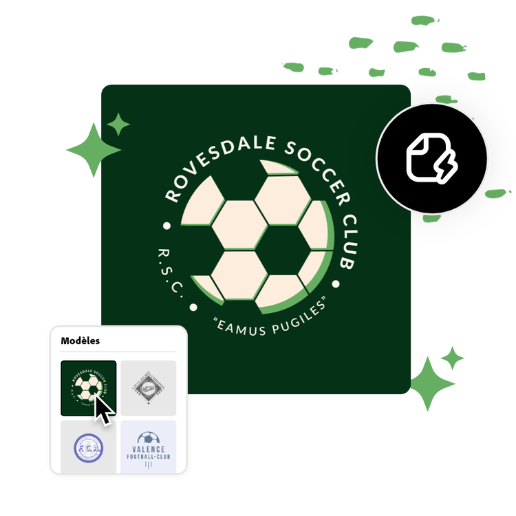 Chaque club a une âme, une histoire à raconter. Adobe Express est l'outil qui permet de transcrire cette narration en un emblème reconnaissable. Bénéficiez d'une multitude de modèles dédiés aux clubs de football, et si l'inspiration vous vient, lancez-vous dans la création pure. Grâce à ses fonctionnalités intuitives, même les novices en design peuvent réaliser un logo club foot qui suscite fierté, appartenance et admiration. Avec Adobe Express, votre club brillera comme jamais.