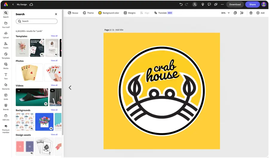 Lorsque vous avez terminé, téléchargez des fichiers PNG et JPG de haute qualité de votre nouveau logo d'autocollant. Téléchargez votre logo dans la section Marques d'Adobe Express pour l'appliquer instantanément à vos futures créations. Imprimez votre logo sur des autocollants ou apposez le tampon sur votre contenu numérique sur toutes vos plateformes.
