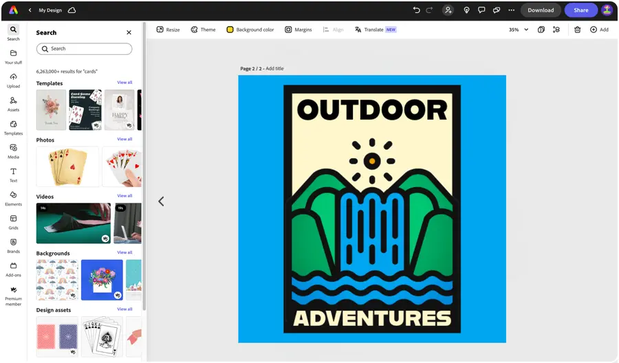 Lorsque vous avez terminé, téléchargez des fichiers PNG et JPG de haute qualité de votre nouveau logo. Téléchargez votre logo dans la section « Marques » d'Adobe Express pour l'appliquer instantanément à vos futures créations. Présentez votre logo sur tshirt, d'autres articles, des supports marketing, des réseaux sociaux et tout ce dont vous pouvez rêver.