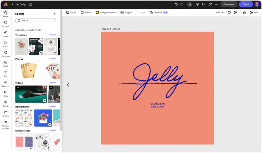 Changez de couleur ou essayez de nouveaux styles de police. Choisissez l'option Personnaliser plus pour ouvrir votre logo dans l'éditeur Adobe Express complet.Enregistrez et partagez votre logo typographique personnalisé.