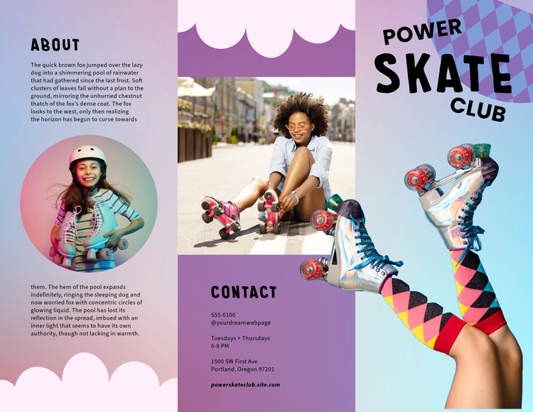 Les brochures sont un excellent moyen de résumer un message rapidement et de manière concise pour les autres. Grâce à l’option Disposition du texte, vous pouvez facilement ajuster l’apparence de vos paragraphes : redimensionnez une zone et le texte restant s’adaptera automatiquement à votre mise en page sans formatage supplémentaire. Si vous ajoutez plusieurs colonnes ou panneaux de texte, vous pouvez donner un aspect soigné à votre brochure et faire en sorte qu’elle soit facile à lire.