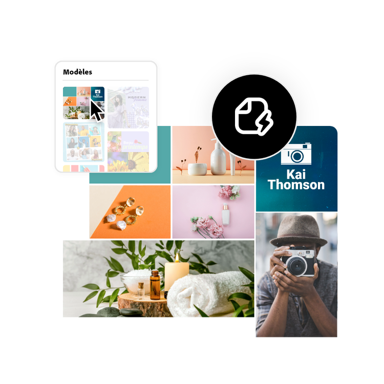Sur un marché saturé, il ne suffit pas que les produits soient bons. Il faut aussi qu'ils soient originaux et reconnaissables. Créez donc un collage photo en ligne qui permet de captiver votre public. Adobe Express vous aide à organiser vos images pour raconter l'histoire de votre marque. En plus de vous fournir des mises en page faciles à modifier, nos modèles vous aident à créer un flux narratif cohérent d'une image à l'autre. Organisez, redimensionner et recadrer vos photos pour créer un design dynamique.