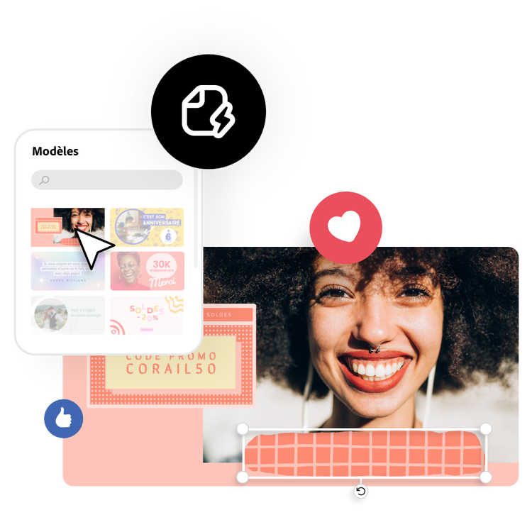 Utilisez nos modèles de publications Facebook ou créez vos propres designs.