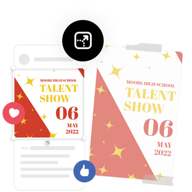 Grâce à la puissance d'Adobe Express, vous pouvez faire passer votre événement à la vitesse supérieure. Une fois votre affiche créée, partagez-la avec vos amis et votre famille via les réseaux sociaux ou par e-mail. Il existe une infinité de possibilités créatives pour susciter l'enthousiasme.