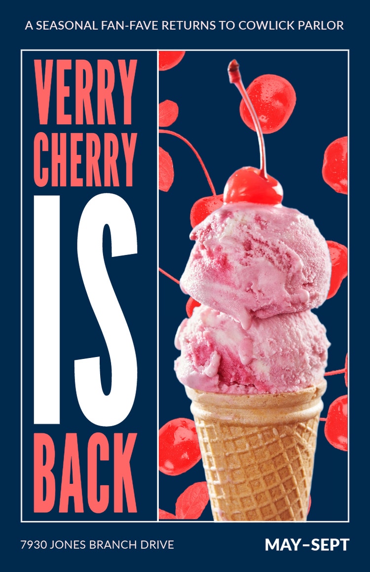 Adobe Express vous incite à sortir des sentiers battus lorsqu'il s'agit de lancer un nouveau projet. Créez d'innombrables designs agrémentés d'images, d'icônes, de motifs ou de couleurs de glaces. Si vous êtes propriétaire d'un magasin de glaces, vous pouvez concevoir le logo de votre magasin avec Adobe Express, puis appliquer votre logo et votre image de marque à d'autres créations telles qu'un menu, la signalisation du magasin, des graphiques sociaux et des cartes de visite. Les possibilités de création sont infinies pour rendre votre prochain projet de crème glacée aussi agréable que possible.