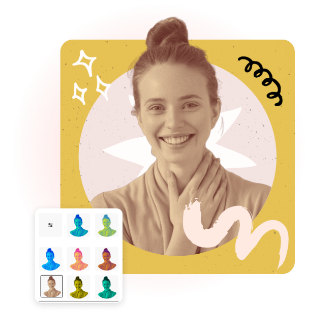 Transformez n’importe quelle photo en une photo de profil percutante en quelques clics, grâce à Adobe Express. Parcourez des milliers d’arrière-plans sélectionnés ou chargez les vôtres, recadrez-les pour obtenir précisément le résultat souhaité et améliorez-les avec des filtres, des effets et bien plus encore pour marquer les esprits sur chaque plateforme de réseaux sociaux.