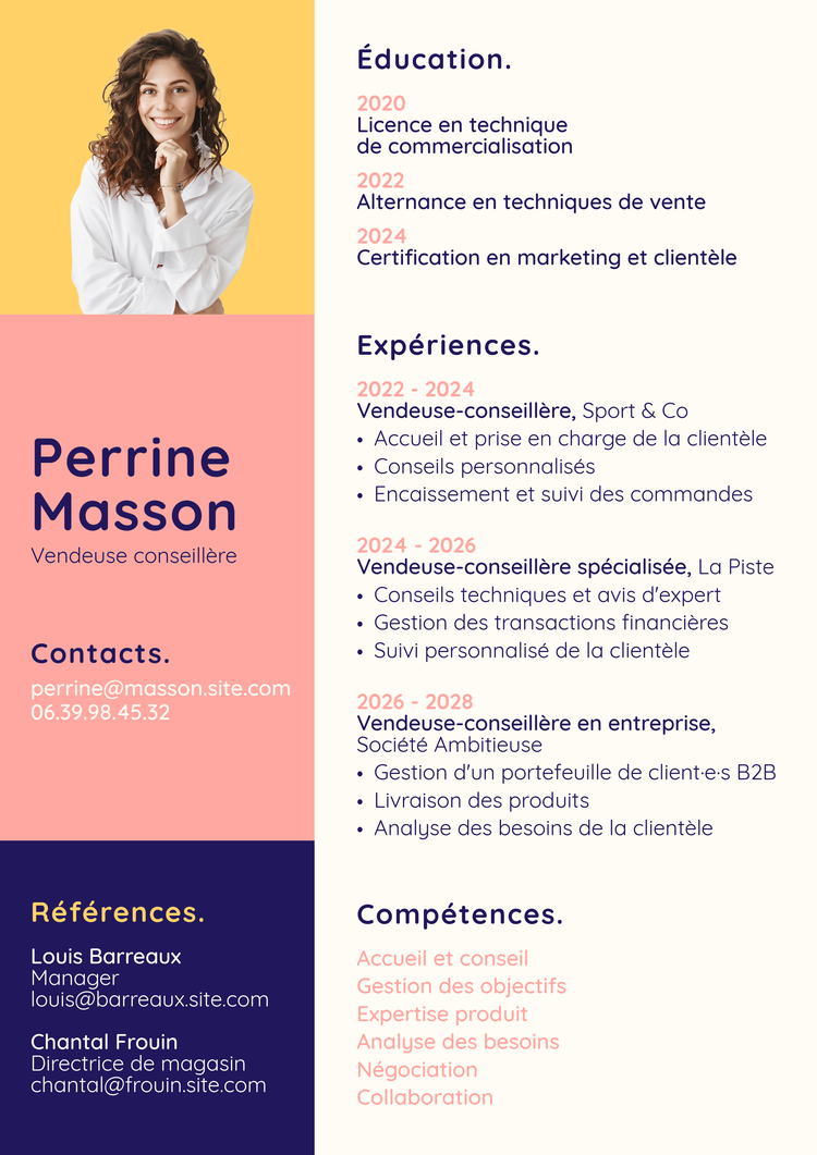Créez un curriculum vitae qui se démarque en quelques minutes avec nos modèles de CV gratuits.