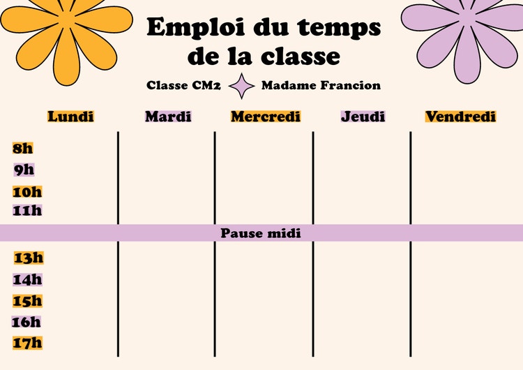 Choisissez l'un de nos modèles et créez votre propre emploi du temps en quelques minutes.