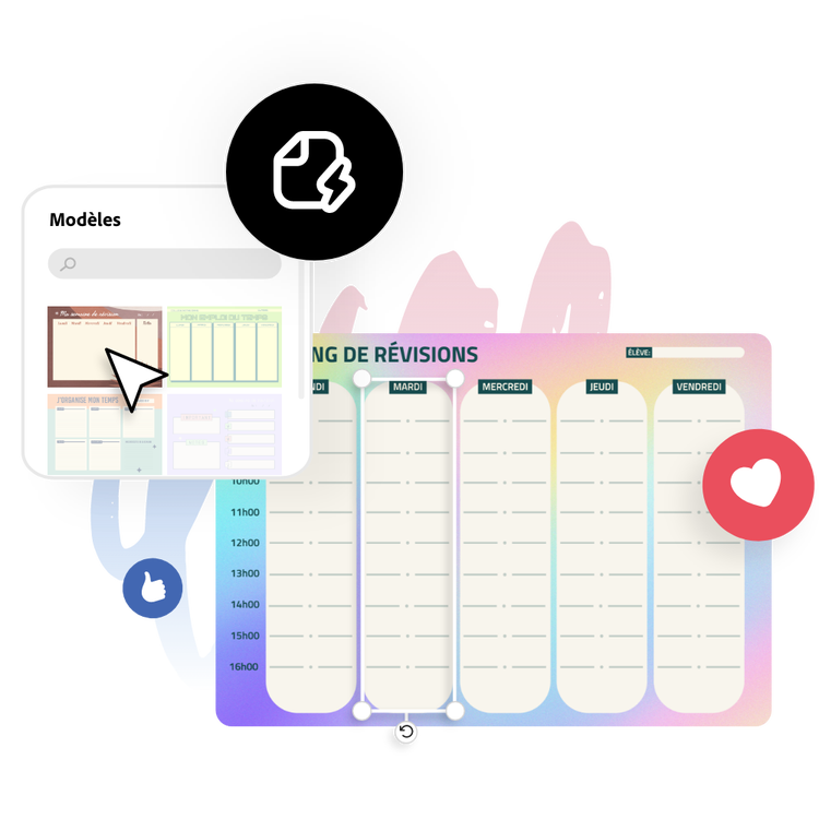 Ajoutez votre touche personnelle à un emploi du temps grâce aux modèles personnalisables d'Adobe Express. Ces outils conviviaux vous permettent de prendre le contrôle de la création et d'obtenir des résultats professionnels. Les possibilités sont infinies pour créer des emplois du temps visuellement impressionnants pour chaque occasion.