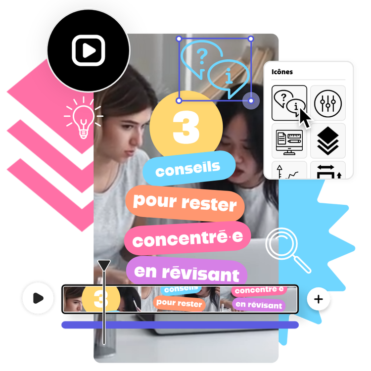 Créez des infographies statiques ou vidéo qui mélangent photos et vidéos dans le même projet, directement dans votre navigateur. Redimensionnez-les facilement pour les partager sur n'importe quelle plateforme en quelques secondes.