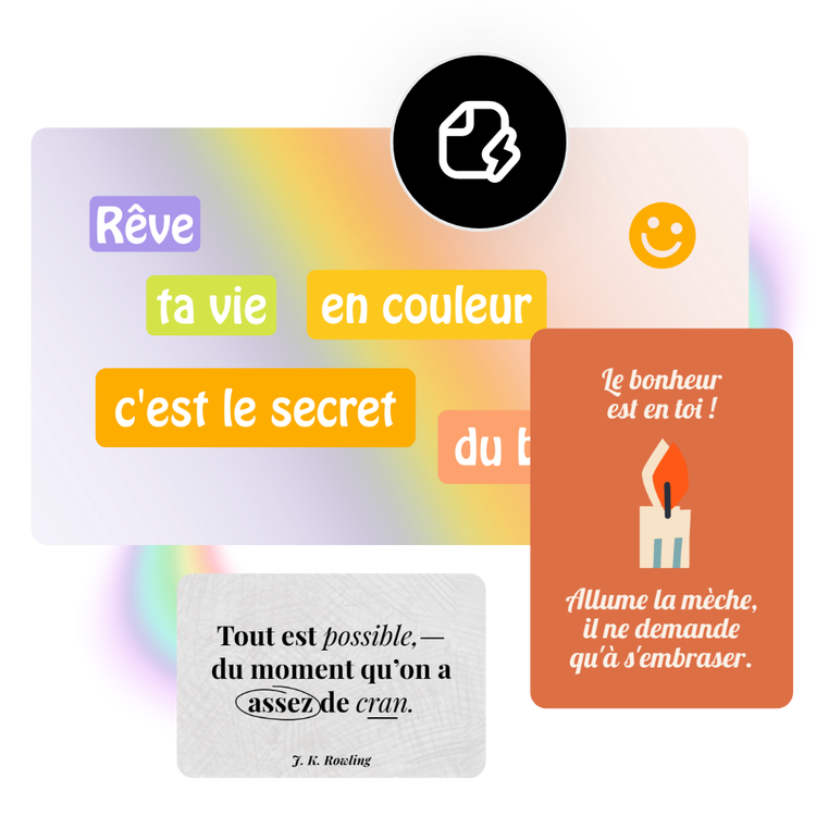 Que vous souhaitiez partir d'un modèle ou d’une page blanche, Adobe Express est votre atelier digital. Faites votre choix parmi une multitude de modèles, ajoutez-y votre touche grâce à des photos, des graphismes et des polices sur-mesure, et obtenez un fond d'écran qui vous ressemble. Simplicité, flexibilité et puissance : Adobe Express vous offre tout cela en un seul endroit.