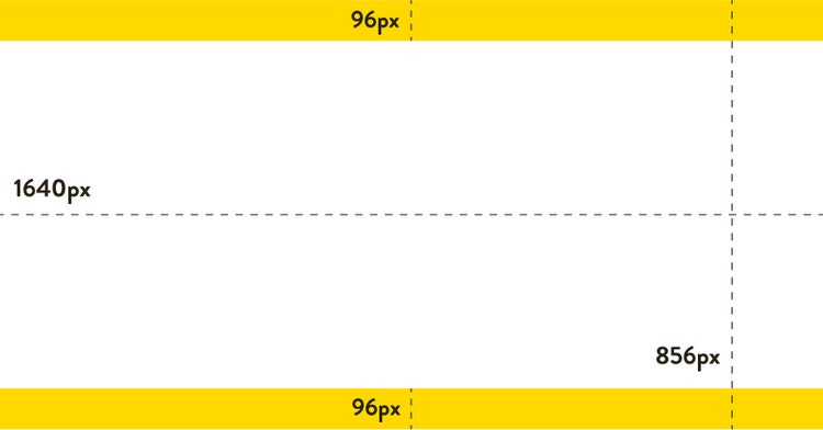 - Votre image sera recadrée après avoir été importée, puisqu’elle sera affichée dans un format dépendant de l’appareil utilisé. Dans ce graphique, les parties en doré ne seront pas visibles après recadrement. Ainsi, tous les éléments importants de votre image devraient se trouver dans la zone blanche.