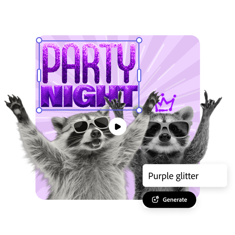 Présentez un message clair en ajoutant facilement du texte à n’importe quel GIF. Qu’il s’agisse de punchlines ou de messages festifs, vous pouvez en dire davantage en combinant texte et animation grâce aux outils d’édition de GIF d’Adobe Express.