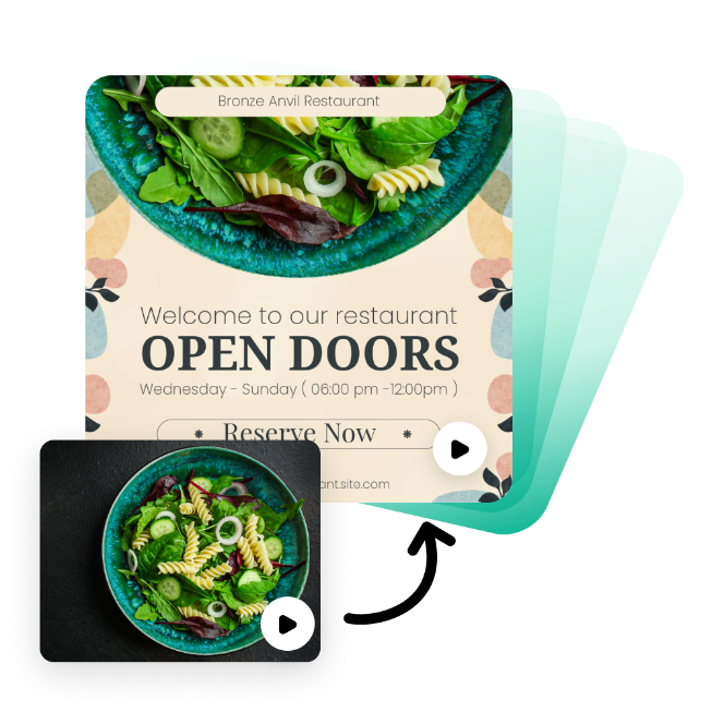 Donnez une toute autre dimension à vos promotions commerciales grâce à la conversion de votre GIF en une vidéo polyvalente dans Adobe Express. Les fichiers MP4 sont facilement partageables et accrocheurs, en particulier sur les médias sociaux. Que vous mettiez en valeur les exercices d’entraînement de la semaine dans votre salle de sport ou que vous présentiez l’avancée des travaux de rénovation de votre maison, la transformation d’un court GIF en une vidéo personnalisée dynamique plaira à coup sûr à votre audience.