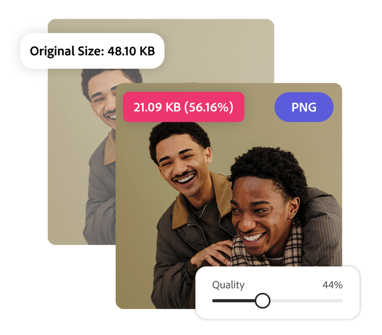 Prenez le contrôle de vos fichiers PNG avec le module complémentaire HARMAN Image Compressor dans Adobe Express. Compressez rapidement votre image à la taille dont vous avez précisément besoin.