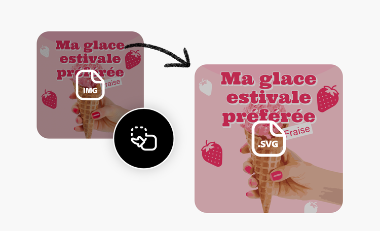 Les SVG sont excellents lorsque vous souhaitez une extensibilité illimitée des images, où le redimensionnement n'affecte en rien leur qualité. Avec Adobe Express, vous pouvez convertir n'importe quelle image en SVG d'un simple clic. Que vous souhaitiez l'utiliser dans des logos, des illustrations, des infographies ou d'autres graphiques, ce vecteur convivial pour le web aura toujours un aspect net, quel que soit le zoom effectué.