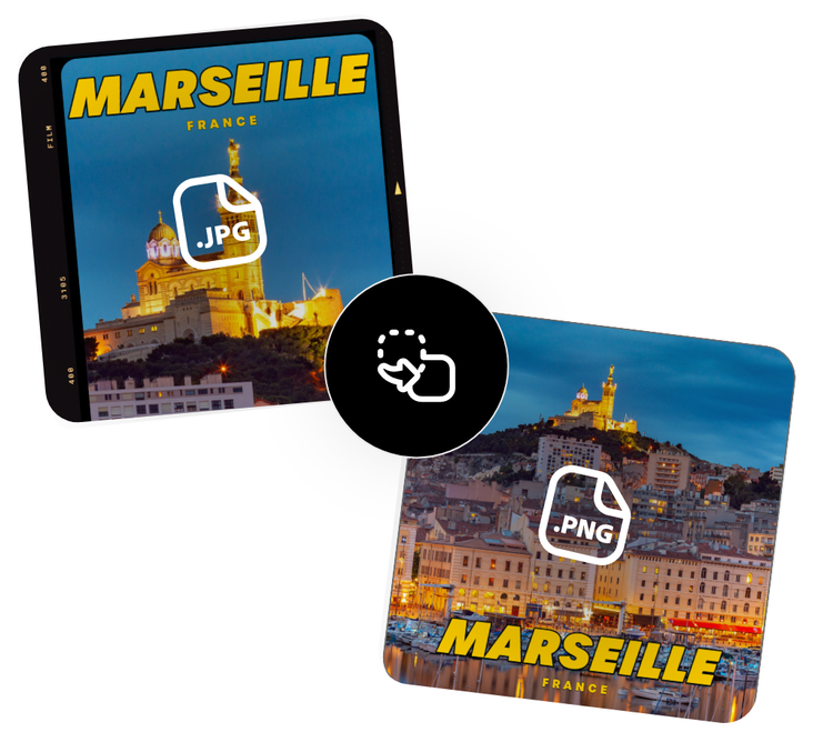 En quelques clics, vous pouvez convertir vos images JPG au format PNG. Les fichiers PNG offrent des fonctionnalités telles que la transparence, les bords estompés et une compression de meilleure qualité. Que vous ayez besoin de convertir de petites ou de grandes images JPG, notre outil de conversion maintient la qualité et fournit des résultats professionnels instantanément.