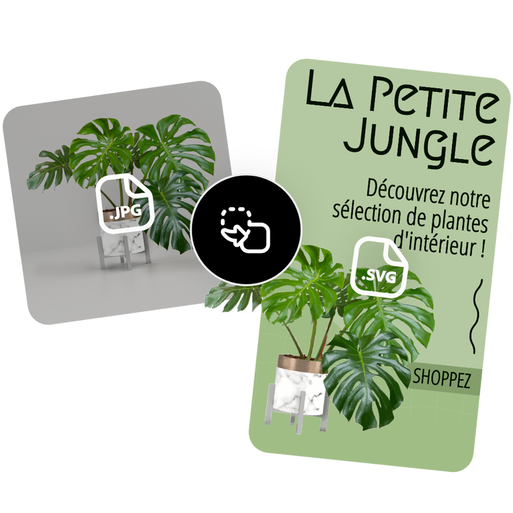 L'outil gratuit de conversion de JPG (JPEG) en SVG d'Adobe Express vous permet de télécharger votre image JPEG et de la convertir en SVG en quelques secondes.