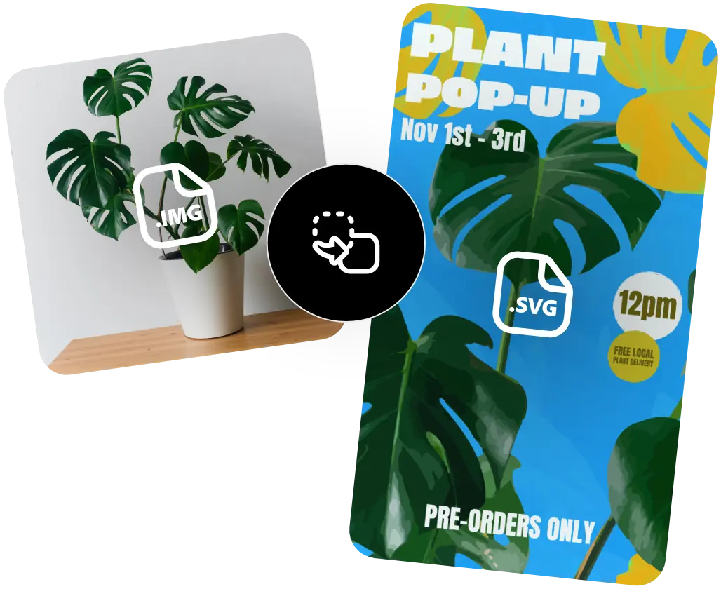 L'outil de conversion SVG gratuit d'Adobe Express vous permet de télécharger toute image JPG ou PNG et de la convertir en SVG en quelques secondes.