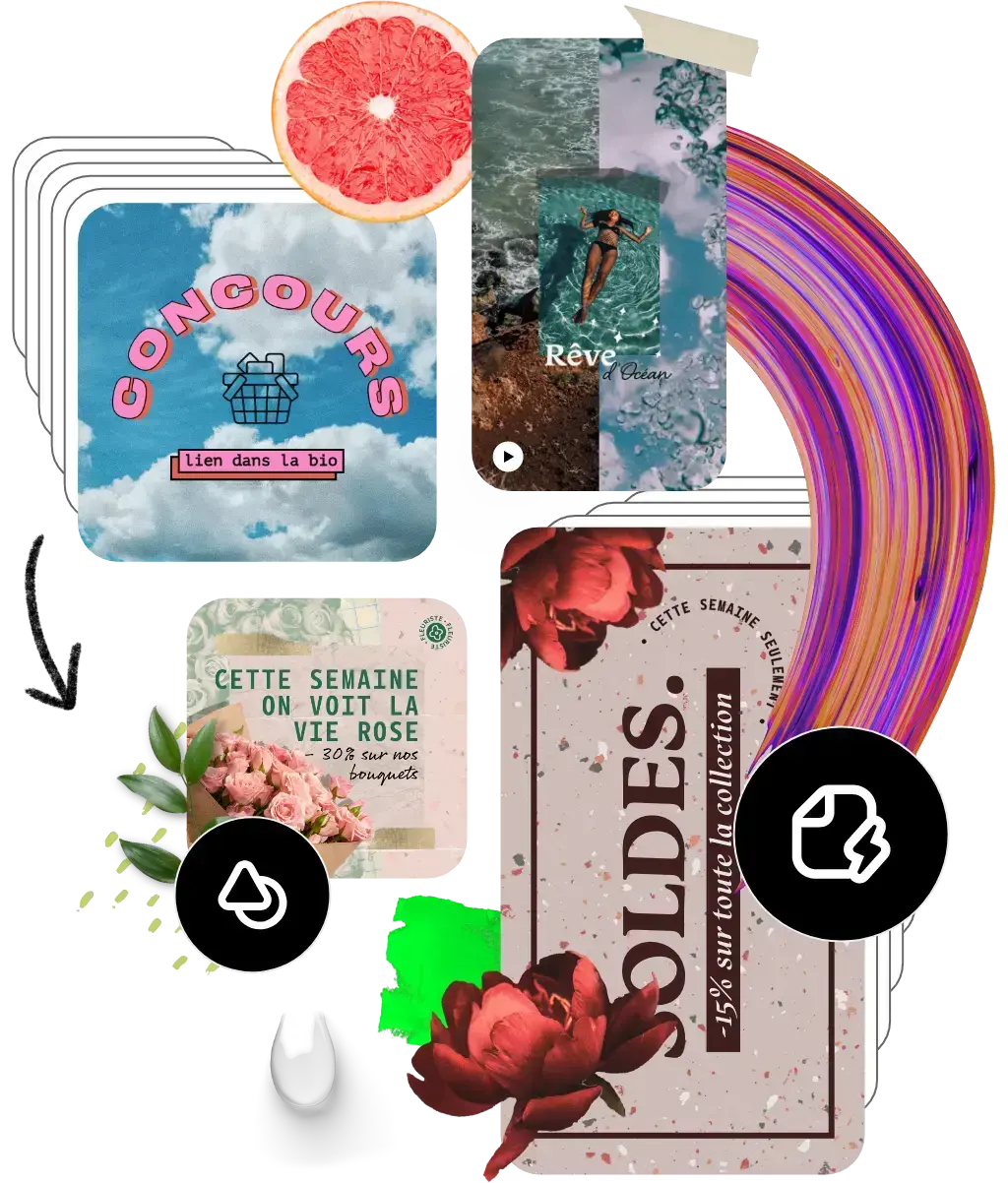 Laissez-vous inspirer et gagnez du temps à l’aide des modèles conçus par des experts pour vous aider à démarrer. Adobe Express dispose d'une collection toujours plus riche de modèles en format portrait, paysage, carré et vertical pour créer des designs qui se démarquent sur tous les canaux et tous les appareils.