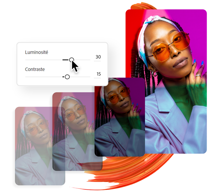 L'éditeur de photos en ligne Adobe Express offre une infinité de possibilités de création et de personnalisation. Améliorez l'esthétique de votre photo à l'aide de dizaines de filtres. Ou encore, donnez de la dimension à votre création en ajoutant de nouveaux calques de texte accrocheur ou de graphiques époustouflants.